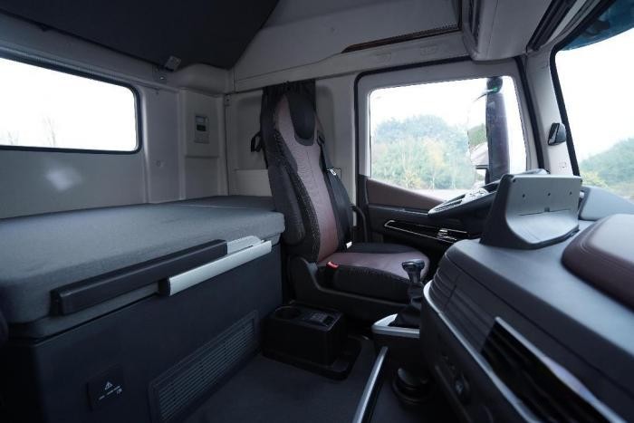 對于很多卡友來說,卡車不單單是賺錢的工具,更是運輸生活的移動小家,只有休息得好,跑車路上才能更加安全高效。因此,紅巖杰獅H6牽引車上配套的生活設施可不少。