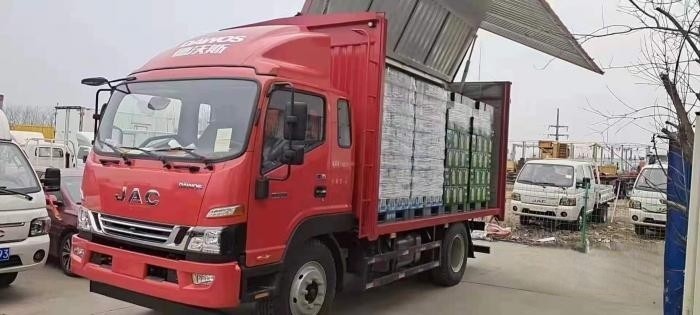 最終,凌師傅在綜合考慮了各方面的需求并試乘試駕后買了一輛江淮德沃斯大鋼炮,搭載安徽康明斯B4.0發(fā)動機,最大馬力195匹,峰值扭矩730牛·米,滿載一車啤酒時起步、加速也很輕快。貨廂內長4850mm、內寬2480mm,在裝載出廠啤酒時有很大的空間優(yōu)勢。