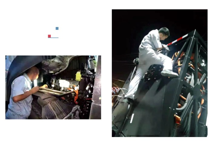 6月23日凌晨0點30分服務小分隊接到救援電話,有車輛在武鋼廠內換電站等候換電,由于技術原因換電不能實施。0點57分服務隊員趕到車輛現場,經檢查,不屬車輛自身故障。但隊員們并沒有離開,而是耐心在現場聯系、協調、等候協作廠家技術人員前來解決問題。隊員們困了就在附近的材料堆上打個盹,一直等到協作廠家技術人員來到現場后,又配合共同解決問題。經過一天一夜的連續奮戰,終于通過技術升級圓滿解決了換電通融性問題。截止2022年7月4日,駐西馬物流服務小分隊共計檢查、處理故障車輛77次,外出服務救援15次,高效保障了東風新能源電動牽引車的可靠運營,贏得了客戶的高度贊譽。