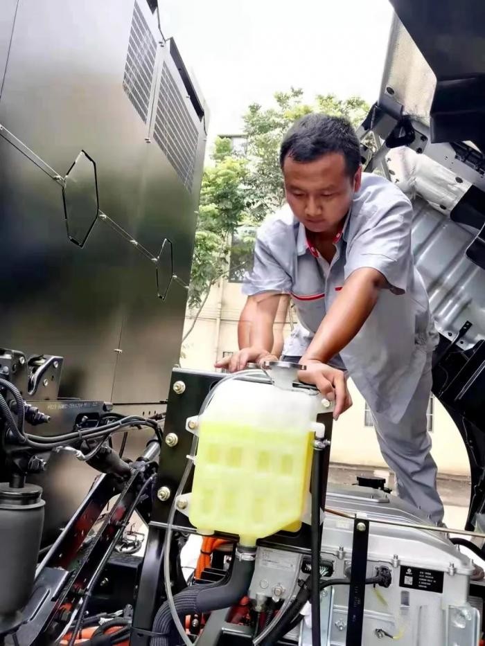 為了確保其它車輛不出現同類問題,他建議對其余49輛車全部進行排查。承擔起排查重任,瞿雄和同伴們頂著烈日一輛輛車拆卸掉厚重的保護罩,檢修完好后再將保護罩裝好。汗水一遍遍浸透工裝,“雖然很辛苦,但我們交付客戶的車輛不能有任何問題。” 瞿雄說道。服務小分隊自進駐客戶廠區以來,工作中真正做到了隨叫隨到、24小時全天候服務。