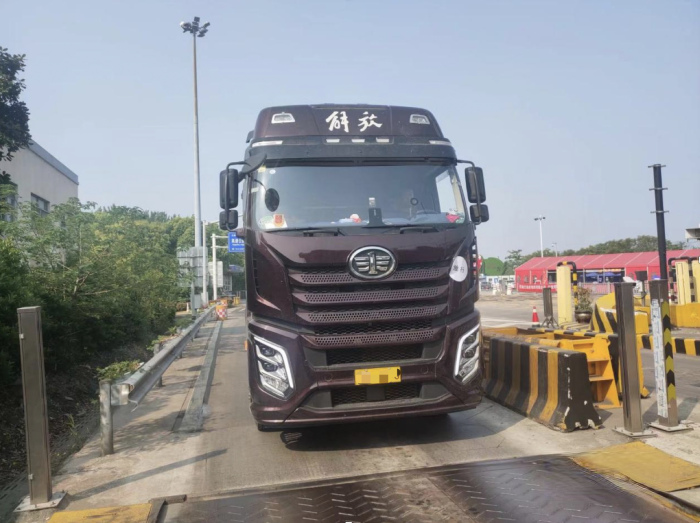 “值得一提的是,我的這輛車后橋采用的是輕量化435橋,與之相匹配的是解放自主研發的12擋AMT變速箱,不僅可以降低車重,而且還能提高載貨量。同時自動變速箱還能有效減少司機的換擋頻次,降低司機的疲勞程度,從而有效提高運輸效率和安全性。”海剛說。