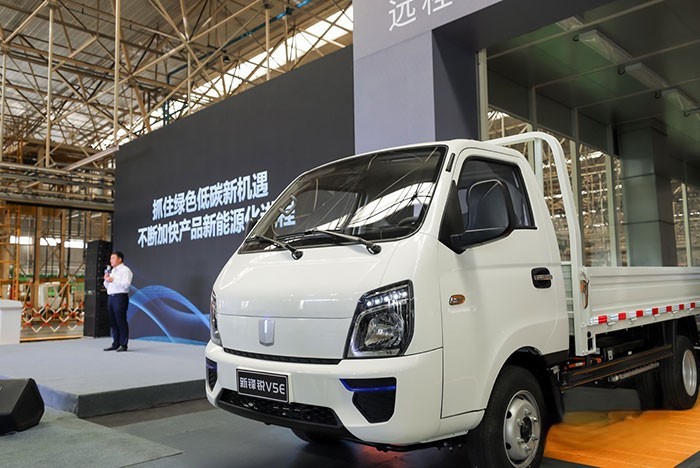 在吉利新能源商用車集團淄博基地首款新能源小卡新鋒銳V5E下線現(xiàn)場,吉利新能源商用車集團CEO范現(xiàn)軍官宣了這一重磅消息。