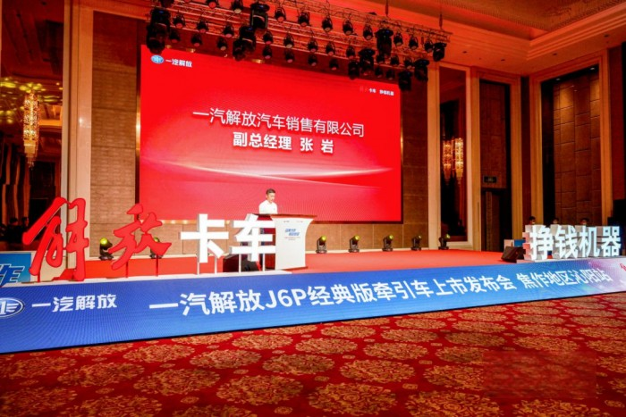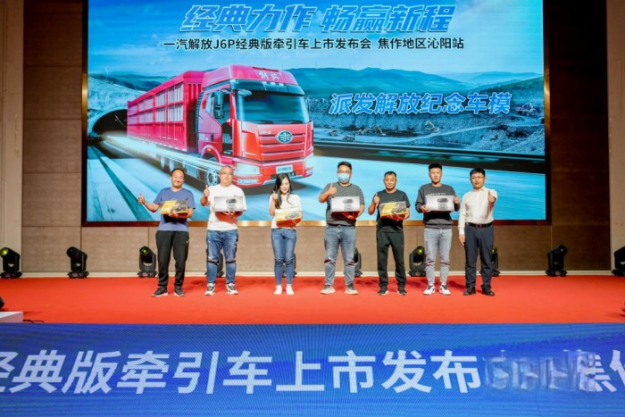 啟航新起點,奮斗新征程。新車上市之際,為了感謝用戶及合作伙伴們多年以來給予一汽解放J6系列的厚愛,一汽解放本部中重型車產品線牽引PDT經理張繼偉先生登臺,向廣大解放卡友送出限量版解放車模。新車上市時刻,更是解放攜手用戶共赴新征程的起點。
