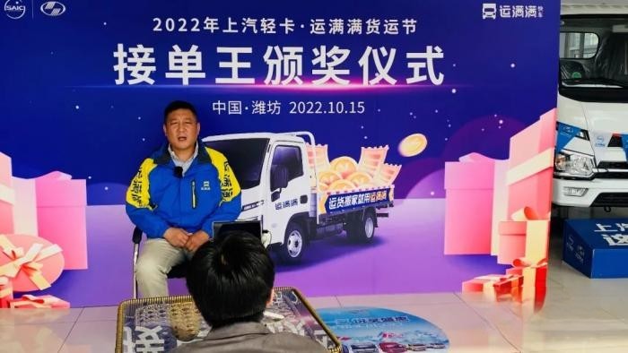 2022“接單王”揭曉,來自濰坊的朱寶江斬獲冠軍。老司機朱師傅自2020年注冊成為運滿滿快車,累積接單近萬單,好評率99%;在濰坊的農貿市場、建材市場、各大社區,皆有朱師傅的辛勤汗水,以及愛車上汽輕卡S100PLUS車型的真實印跡。僅9月21日至9月30日期間,朱師傅平均每天20單,在近7萬名卡友中脫穎而出,成功摘得接單王稱號,并收獲1臺上汽輕卡福星S100,成為此次貨運節的最大贏家。