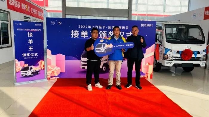 2022年9月下旬起,上汽輕卡聯合運滿滿同城快車開展的貨運節正式拉開帷幕,通過單王挑戰賽、超級津貼、滿單獎勵等豐富多樣的線上線下活動,用一站式的解決方案、高標準的服務、實實在在的補貼,高效匹配供需兩側貨運需求,助力實體經濟發展,為同城貨運司機創收。時隔近一月的火熱角逐,于10月落下帷幕,產生本次運貨節最終冠軍,10月15日,貨運節于山東濰坊開展貨運節接單王頒獎儀式。
