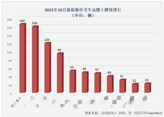 激活新能源發展引擎,激發市場創新活力。10月,徐工新能源牽引車銷量第一,上險166臺!市占率20.65%!
