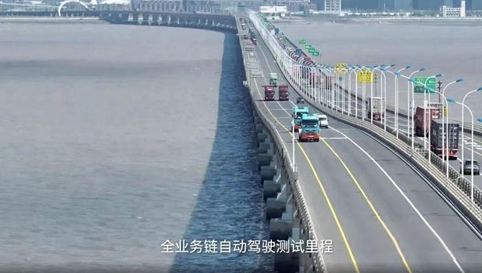 “減員化”運營測試也已超額完成二階段兩車編隊既定目標,主駕無人零接管運營里程突破2000公里,預計將在年內實現真無人,并達成五車編隊、三車真無人隊列跟馳的“減員化”項目目標,將提升東海大橋至少50%的通行效率,承載起東海大橋百萬箱級的運輸體量,成為“真”無人商業化運營快速落地和規模化應用的有力助推。