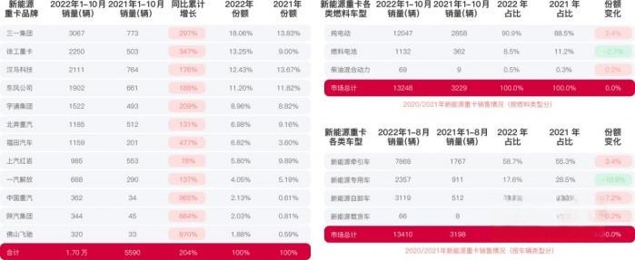本次直播請到了康邁銷售經理王明江與產品工程師李其杰,二人在直播中分別就十月重卡銷量、新能源重卡發展趨勢、各種新能源技術路線的優劣勢、各主機廠在氫燃料電池領域的研發成果及優勢等物流從業者感興趣的問題進行討論與交流。二位嘉賓認為雖然重卡市場整體低迷,但我們還是能看到一些亮點的。比如新能源重卡賽道火熱,可以說是爆發式增長,今年上半年,新能源重卡累計銷售10120輛,實現了幾乎與去年全年銷量持平的良好業績,同比大漲491%,成為重卡市場最大的亮點。