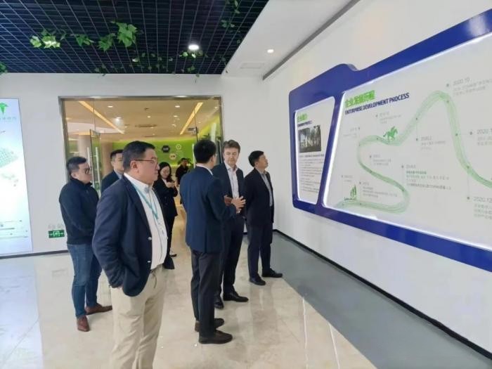 2023年4月17日,英飛凌零碳工業功率事業部執行副總裁Dominik Bilo、高級副總裁于代輝等一行領導來特百佳參觀交流,公司董事長黃高成、副總經理兼總工程師鄧躍躍等領導熱情接待并陪同參觀了企業展廳及實驗室。