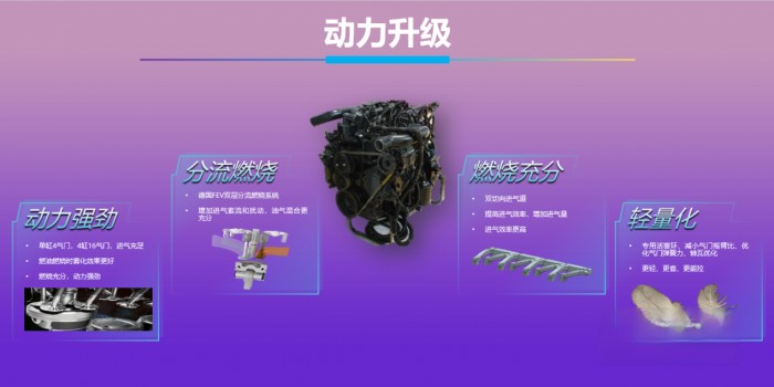 該發(fā)動(dòng)機(jī)采用德國(guó)FEV雙層分流燃燒系統(tǒng),燃油霧化效果更好。搭配雙切向進(jìn)氣道,進(jìn)氣效率更高,燃燒更充分,動(dòng)力強(qiáng)勁,經(jīng)濟(jì)省油。活塞環(huán)、氣門(mén)彈簧、軸瓦等零部件全部?jī)?yōu)化,更輕、更省、更能拉。