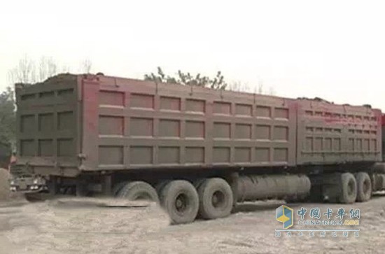 記者在北廣場超限超載卸載場見到了兩輛貨車,超載車輛分別是一輛五軸貨車和一輛六軸貨車,所運輸貨物均為連砂石。從外觀上看,兩輛貨車由于加高了貨箱欄板顯得異常高大,加之車身較長,遠遠看去猶如一座可以移動的小山丘,可以明顯看到輪胎已被壓扁。