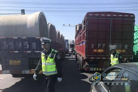 煙臺交警重拳嚴查貨車違法