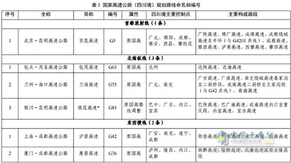 《四川省高速公路網路線命名和編號方案》