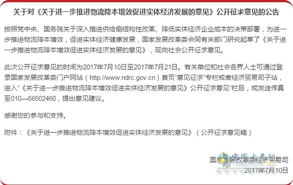 關于進一步推進物流降本增效 促進實體經濟發展的意見
