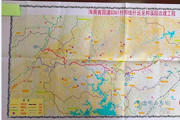 海南國(guó)道G361什邦(什運(yùn)至邦溪段)改建工程,紅線為改建后的G361國(guó)道。