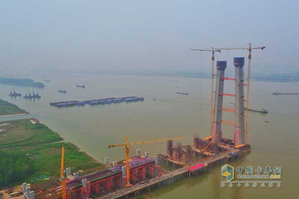 建設中的武漢楊泗港長江大橋