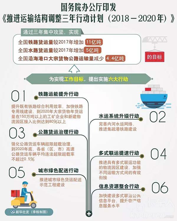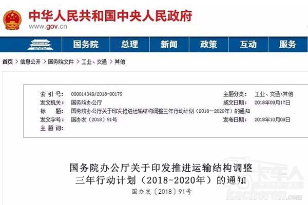 近兩年,國家一直在致力推進(jìn)運(yùn)輸結(jié)構(gòu)調(diào)整。公轉(zhuǎn)鐵,公轉(zhuǎn)水,會(huì)對(duì)公路貨運(yùn)產(chǎn)生很大影響,事關(guān)幾千萬貨車司機(jī)的利益。最近,調(diào)整運(yùn)輸結(jié)構(gòu)又有新動(dòng)作了。2018年10月9日,國務(wù)院下發(fā)《關(guān)于印發(fā)推進(jìn)運(yùn)輸結(jié)構(gòu)調(diào)整三年行動(dòng)計(jì)劃(2018—2020年)的通知》。