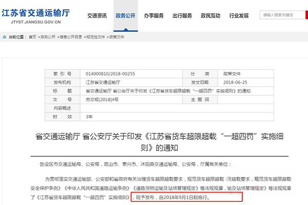 江蘇省貨車(chē)超限超載“一超四罰”實(shí)施細(xì)則