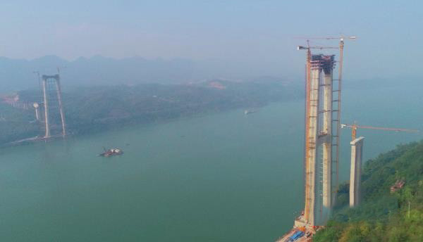重慶:南兩高速太洪長江大橋南岸主塔順利封頂