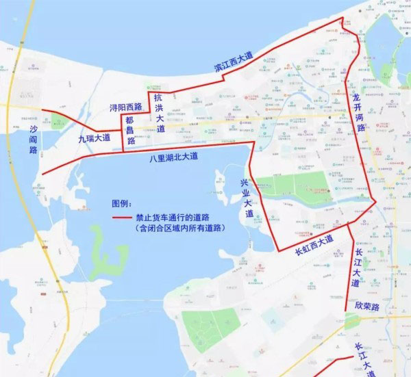 九江市區部分道路實施貨車禁行措施