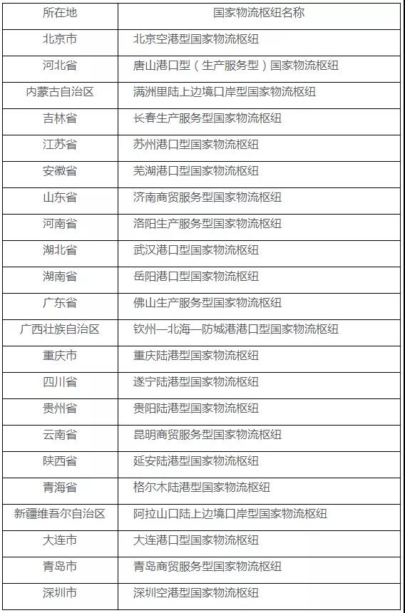 重磅|2020年國家物流樞紐建設名單發布,22個樞紐入選