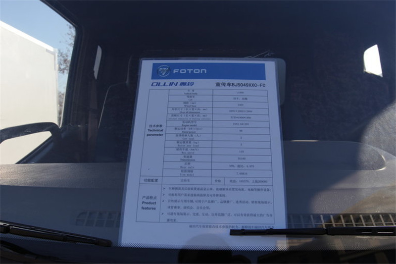 福田 奧鈴CTX 131馬力 3.7米 4X2 國四排半廂式輕卡(宣傳車)(BJ5049XXC-FC)
