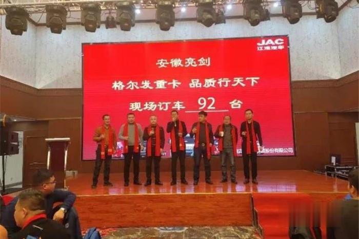 其中在商丘地區(qū),1月17日,商丘格爾發(fā)年終答謝會邀請運輸公司60家,司機100余人,合計訂車102臺,其中格爾發(fā)雙子星牽引車15臺、載貨車87臺,現(xiàn)場氛圍熱烈,客戶對產(chǎn)品感知進一步增強。1月22日,江淮格爾發(fā)河南大區(qū)經(jīng)銷商南陽新平源組織客戶答謝會,現(xiàn)場訂車56臺,再一次將河南市場燃爆。