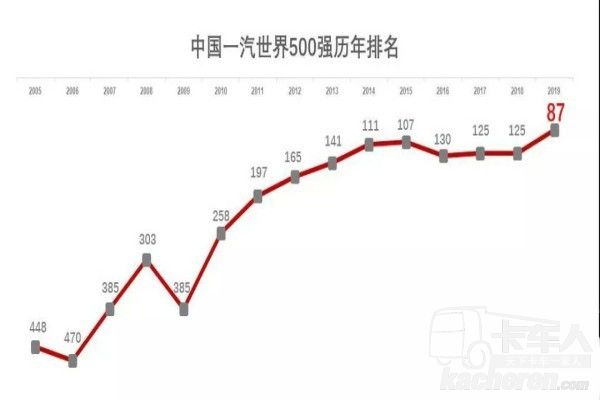 2019年7月22日,《財富》世界500強最新排行榜正式發布,中國一汽位列榜單第87位,較去年第125位有大幅提高,連續15年上榜。