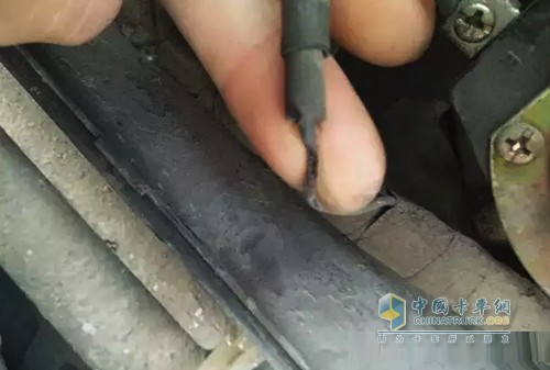 故障分析:起動(dòng)車輛時(shí)發(fā)現(xiàn)電源盒電源總開關(guān)搭鐵線虛接,并且有嚴(yán)重磨損,重新包扎故障排除。