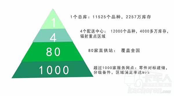 東風輕型車構建起“金字塔式”保障體系,全面執行由上而下定期定點服務。其中,總庫擁有11525個零件品種,總庫存為2257萬;4個輻射重點區域的配送中心擁有零件品種12000個,庫存4000多萬。此外,還擁有覆蓋全國的80家直供站,以及超過1000家服務網點,區域滿足率達80%。