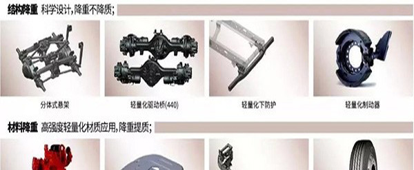 內部骨架采用鋼板、鋁合金和鎂合金復合結構,內飾鎂鋁合金化,在保證可靠性的前提下天龍旗艦實現降重400Kg,自重最低輕至8.8噸。