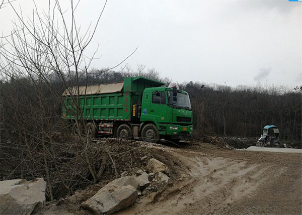 “這些砂巖等輔料都是從蕪湖繁昌縣桃花尖運來的,單邊運輸距離有十三四公里,來回一趟二十七八公里吧。雖然距離不是很遠,但是路況很復雜,泥濘路、坑洼路、碎石路、長坡等各種路況應有盡有,所以這這段路并不是特別好開。”