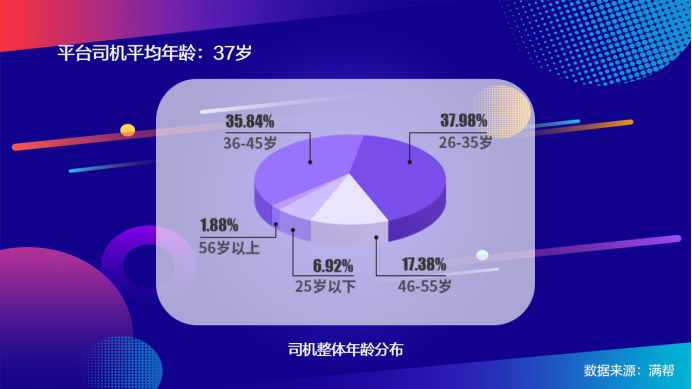 卡車司機群體離消費者很遠,生活中基本沒有交集;但司機離消費者又很近,他們的每一趟貨物都與消費者衣食住行息息相關。不同于對卡車司機都是爺叔的想象,滿幫平臺大數據顯示,卡車司機平均年齡僅有37歲,45歲以下占比近80%,80后、90后是中堅力量。
