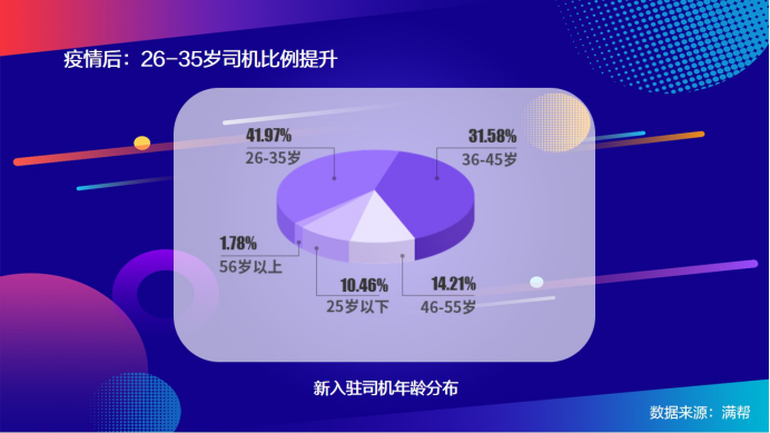 2020年10月,滿幫集團正式發布《2020中國干線卡車司機大數據》。數據顯示,疫情以來,平臺入新駐司機年齡結構趨年輕化,車型發生變化,冷藏車增多。