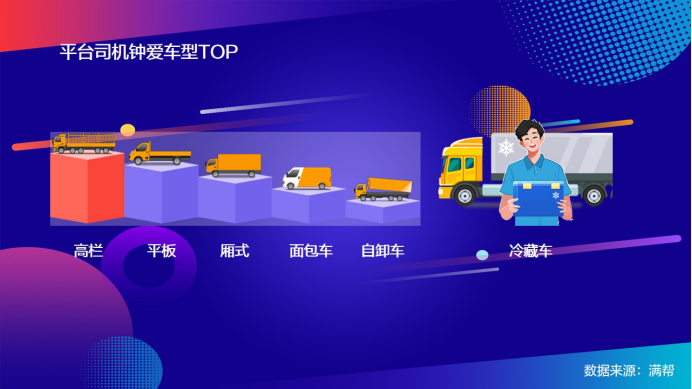 卡車司機鐘愛什么車型?平臺整體數據顯示,與貨物類型相對應,可以裝載各種普通貨物的高欄卡車、能滿足大宗物品運輸需求的平板卡車,以及快遞、商超貨物所需的廂式車,加之面包車、自卸車,是司機師傅以往最鐘愛的五款車型。