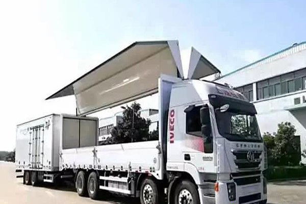 上汽紅巖杰獅C500中置軸貨運列車的貨箱采用了主、掛車科學結合的方式,相較于傳統的單貨箱卡車來說,雙貨箱可實現快速裝卸貨物,運輸效率明顯更高;在裝卸貨方面,箱體開度大,兩邊的車門可以同時大幅度打開,主貨箱和掛貨箱能同時裝卸貨,大大節省了裝卸時間。